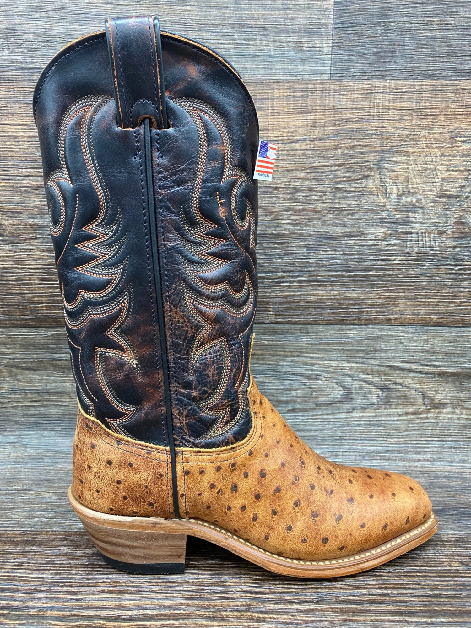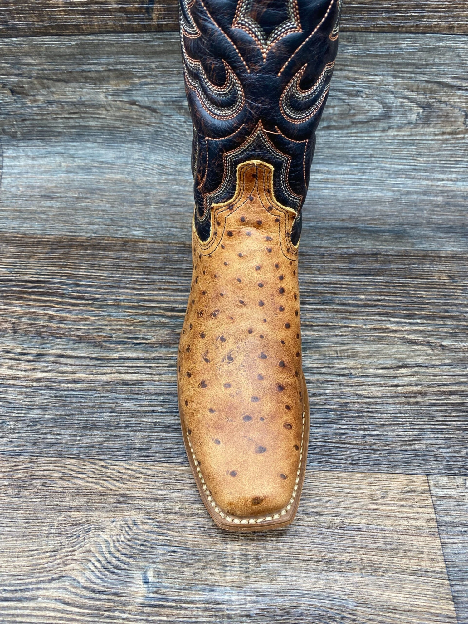 Genuine Cowhide vamp with Cognac Ostrich Design