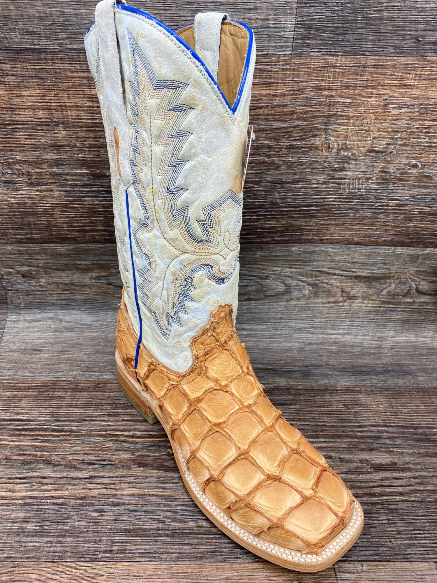 Vintage Cognac Vamp with Weathered White western Stitched Shaft