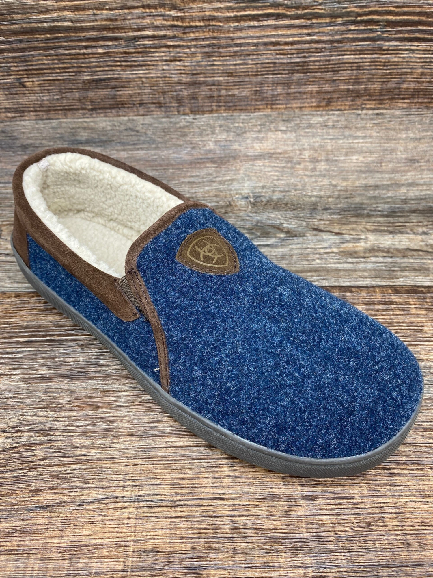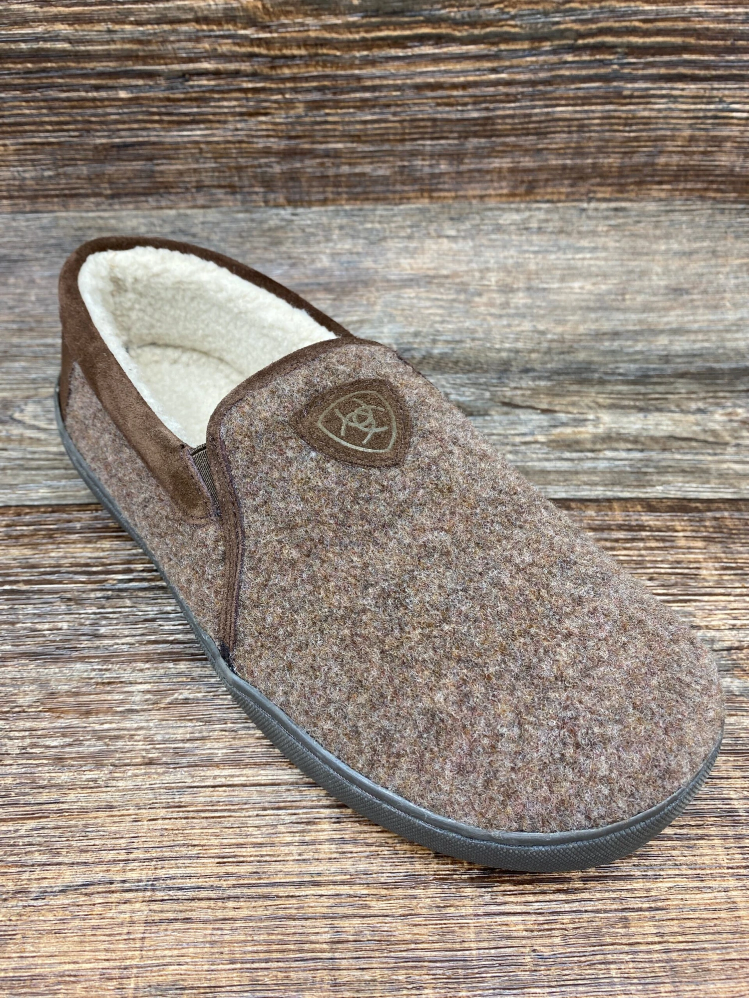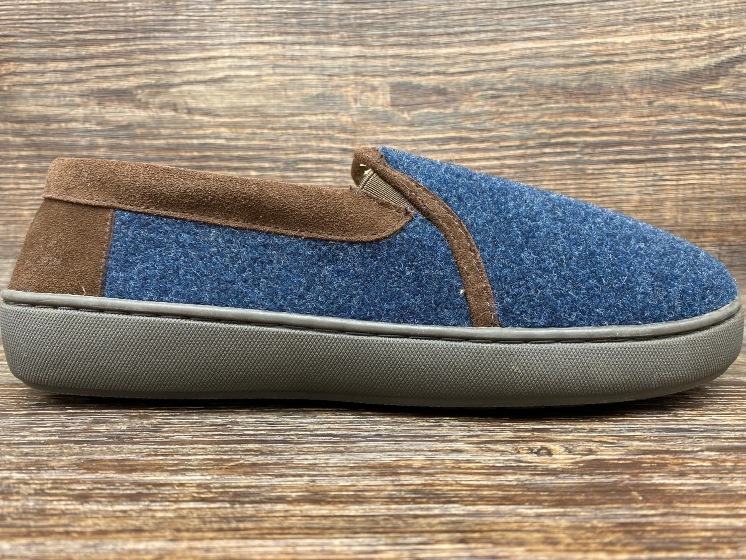 - Heathered wool blend upper with suede heel, collar and trim