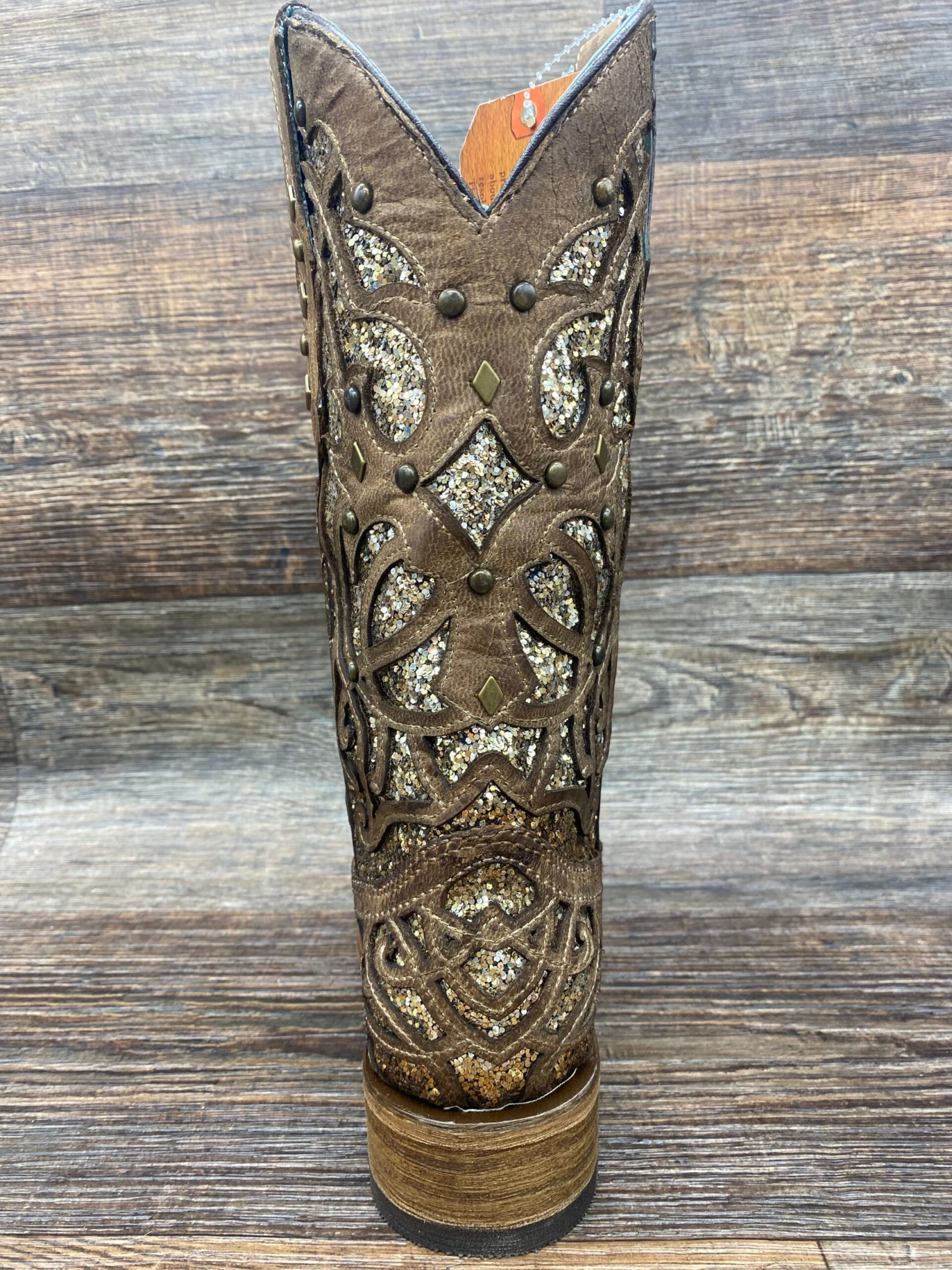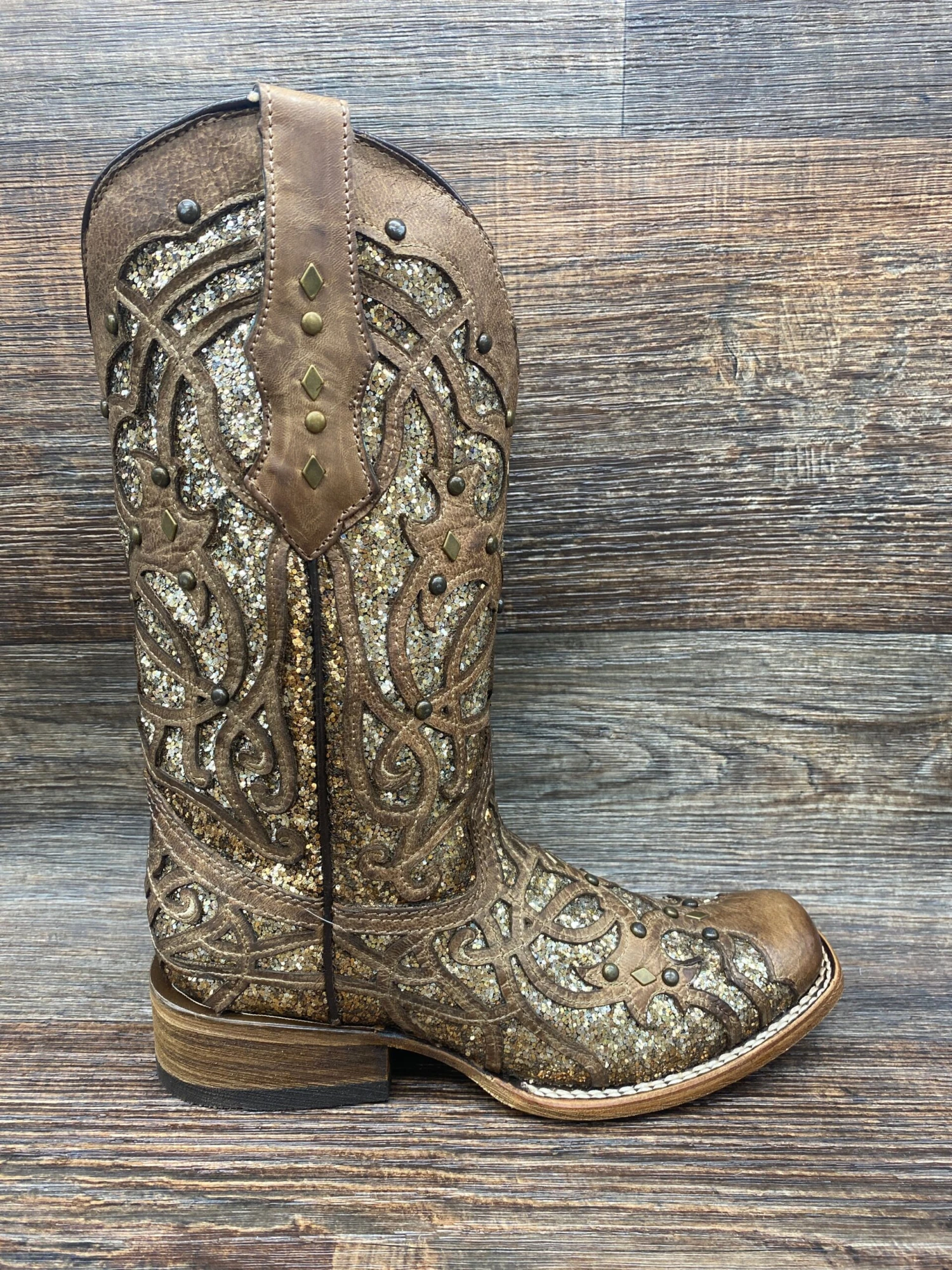 Ladies Orix Glitter Inlay & Studs Sq. Toe – The C3275 is an original design featuring a finely cut laser outline over a champagne glitter inlay, adding just the right amount of sparkle.