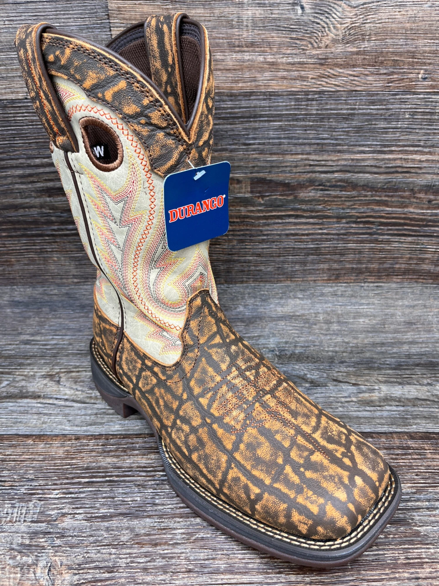 This is the men’s 11″ Western Tan Elephant Print/Bone Durango® Rebel™.