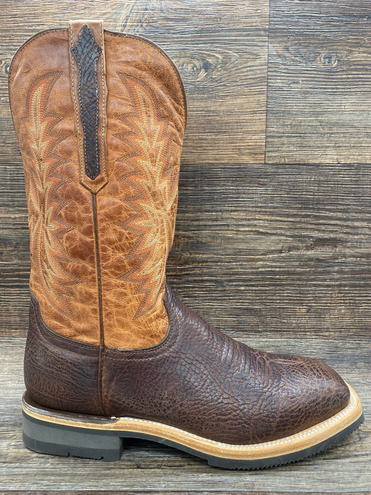 Barn boots are performance footwear, built with technology that allows them to stand up to the toughest conditions — and look good doing it. Work boots handcrafted from the premium materials you expect from Lucchese, they fit well and keep feet comfortable all day. We use real leather inside and out and a padded heel and insole that’s a single piece, so you can easily take it out to let it dry or replace it when it becomes worn. Oil- and slip-resistant tread means safer traction in slick places. Mud-releasing technology allows the rubber outsole to shed mud with every step.